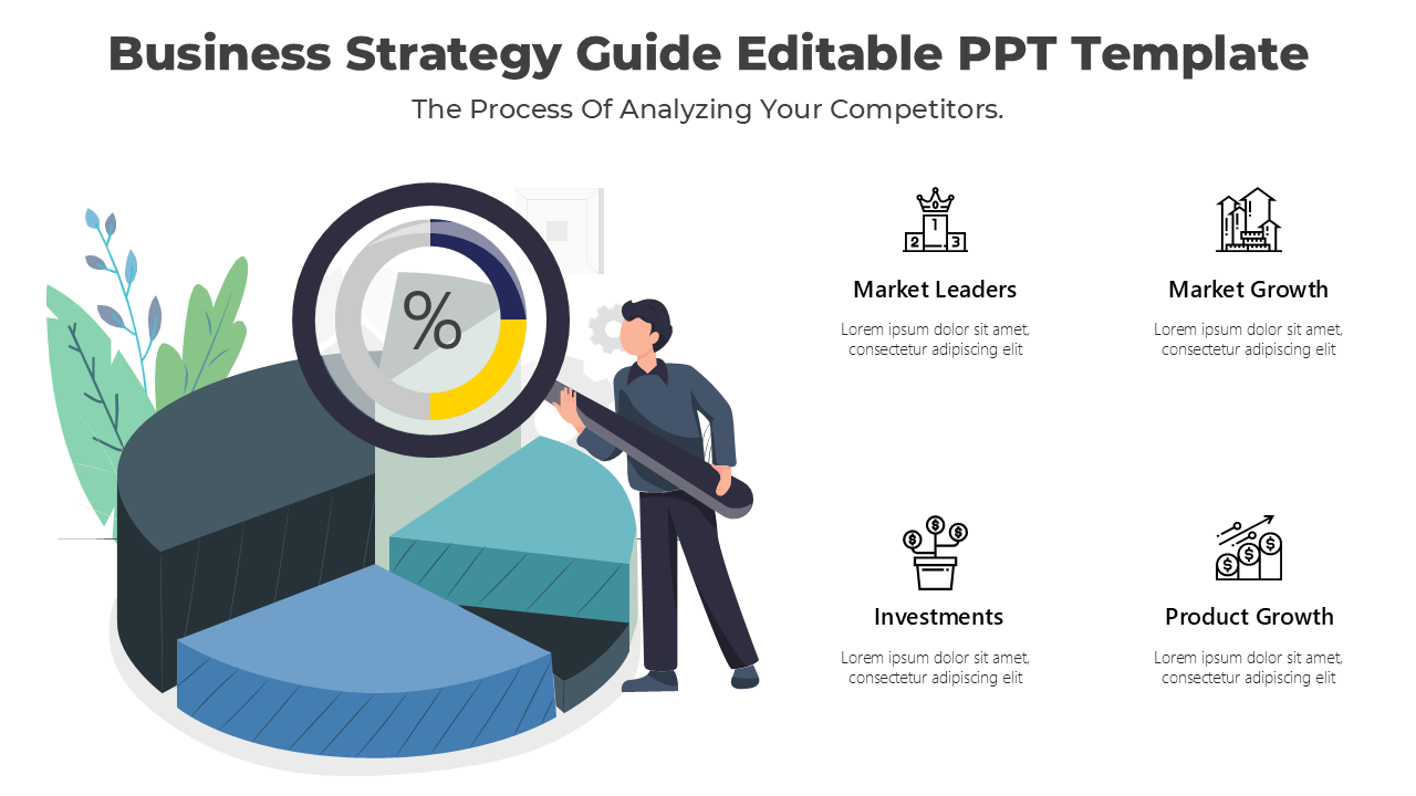 With Business Strategy Guide Template, craft professional slides that enhance clarity and engagement. Perfect for business reports, marketing plans, and strategic overviews.